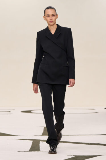 A Coleção explora a tensão entre a pureza e a expressividade, com recortes expressivos dando espaço para bordados e ornamentos, depois à organza selvagem e drapeados líquidos, e de volta à contenção equilibrada. A tatilidade define os tecidos, desde uma lã e cashmere densos e macios, passando por uma gabardine e sarja firmes e secas, até por um moleskin e algodão foscos e escovados, finalizando com uma faille e cetim brilhantes. A paleta urbana de Collection está enraizada nos tons neutros característicos da marca – preto, granito, cinza, fudge, off-white e porcelana – com toques inesperados de barolo, framboesa e um cítrico claro.
