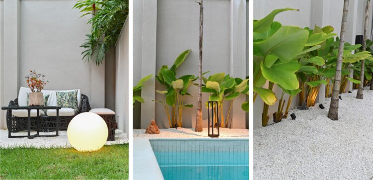 Por fim, a iluminação também deve ser pensada para jardins e áreas de lazer, principalmente para a realização de eventos noturnos como encontros ou festas. É necessário ter cuidado na escolha dos artigos que necessitam ter índices de proteção a adequados para cada situação. Para se ter uma ideia, produtos com IP65 são resistentes à poeira e aos respingos d’água, IP66 suportam jatos d’água e IP67 resistem à imersão temporária.