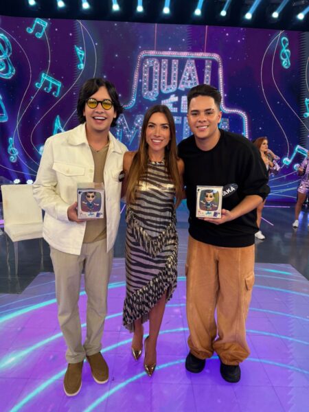Kaká e Pedrinho, que fazem sucesso como cantores, mostraram que o talento vai além da música e se aventuraram no divertido jogo de adivinhação musical comandado por Patrícia Abravanel. A gravação foi marcada por momentos de descontração, risadas e muita interação entre os participantes e a apresentadora.