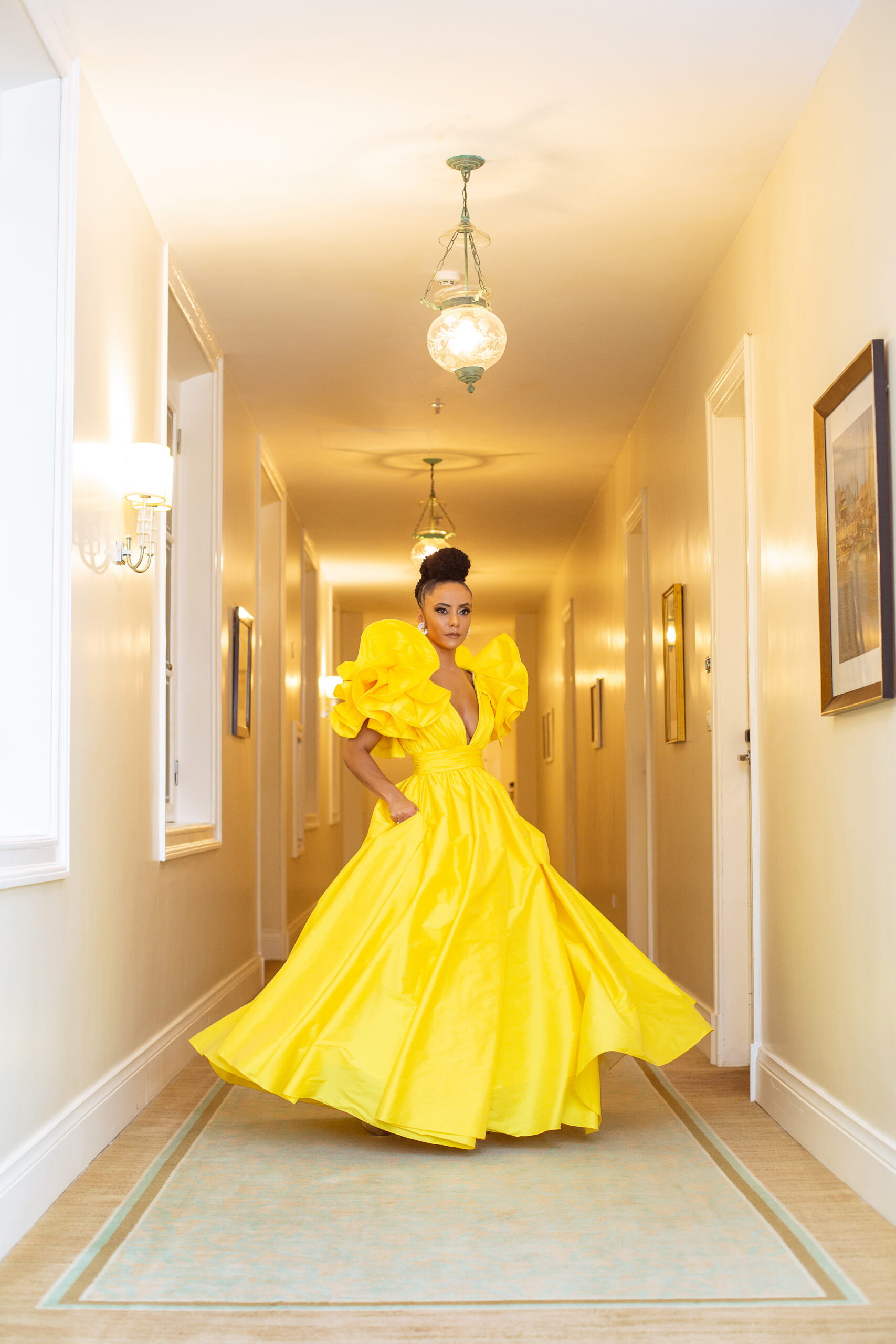 Para ela, a escolha do vestido reflete um processo de descoberta e conexão entre moda, arte e história. “Quis apostar em um modelo de vestido de alta costura amplo, com decote e babado, que é completamente distante de tudo que já usei! A peça foi criada pela estilista Vanessa Abbud, com inspiração no look usado pela cantora Normani no tapete vermelho do Met Gala, em 2021”, explicou a jornalista.